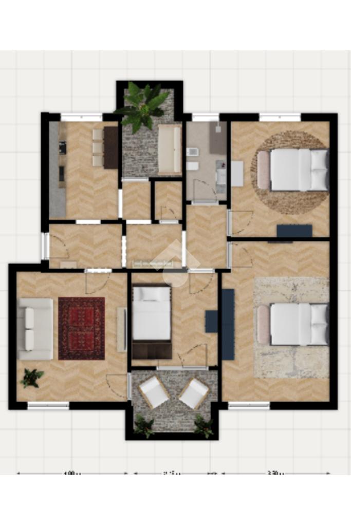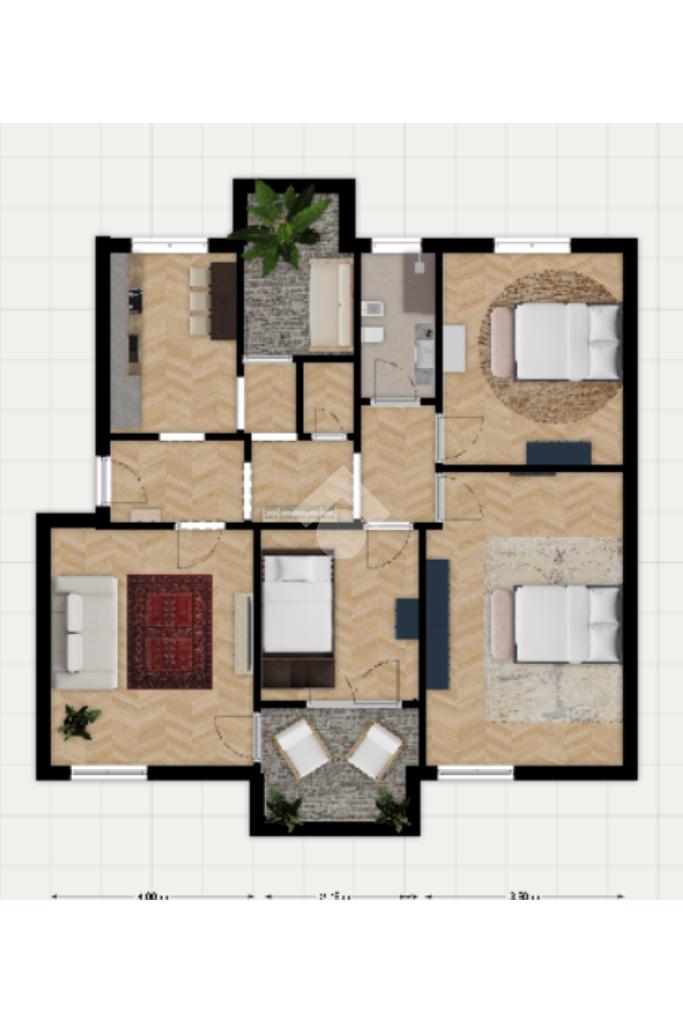 La zona notte è composta da tre camere: una matrimoniale molto ampia e due camere singole, di cui una con accesso diretto sul balcone del soggiorno. Completano l'abitazione un bagno con doccia, un comodo ripostiglio e una cantina di pertinenza.