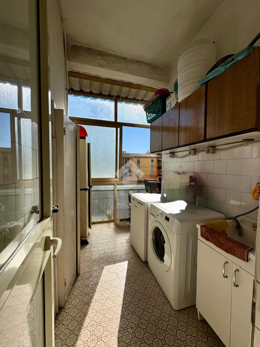 L'appartamento si apre con un ingresso che conduce a destra a un luminoso e spazioso soggiorno con balcone esposto a ovest, perfetto per godersi la luce del tramonto. L'ampio disimpegno ci accompagna poi alla cucina abitabile recentemente ristrutturata e una pratica zona lavanderia, da cui si può ammirare una splendida vista sul verde circostante.